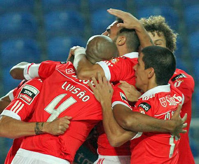 A principal novidade foi a ausência do Carlos Martins - nem no banco se sentou (o que provavelmente foi uma boa opção, já que dos quatro jogadores em risco de falhar a próxima jornada, para mim o Carlos Martins seria aquele que maiores probabilidades teria de ver um amarelo). Para o seu lugar no onze avançou o regressado Coentrão, passando o Gaitán para a direita do meio campo. Tal como a semana passada, o Benfica teve uma entrada muito morna no jogo. Foi o Paços quem aproveitou para mostrar que estava na Luz para tentar discutir o resultado, e ao fim de dez minutos já tinham tentado cinco remates à nossa baliza, como Roberto a mostrar a boa fase que atravessa. Só depois disso o Benfica acordou, e teve uma boa oportunidade pelo Saviola que, isolado por um grande passe do Coentrão, viu o guarda-redes do Paços sair rápido e negar-lhe o golo. Esta oportunidade marcou o início do melhor período do Benfica no jogo, sublinhado pelo primeiro golo, obtido perto do primeiro quarto de hora. Foi um lance em que o mérito vai todinho para o Aimar, que foi buscar a bola ainda ao nosso meio campo e depois foi por ali fora, deixando para trás quem quer que lhe aparecesse pela frente, até culminar o lance com um remate muito colocado de fora da área, a não deixar hipóteses de defesa. Um grande golo.