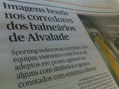«Adeptos das claques em poses agressivas, desafiando os seguranças. Outros de cara tapada e com tochas na mão. Outro numa pose que sugere uma saudação fascista. Outro ainda com um tatuagem com a cruz de ferro, um símbolo que, não sendo exclusivo do nazismo, está muito associado a movimentos da extrema-direita. Foram estas as imagens que o Sporting colocou, nesta época, no corredor que dá acesso aos balneários da equipa visitante, no Estádio de Alvalade — um caminho que tem de ser percorrido pelos jogadores visitantes para se equiparem e depois no caminho de ida e regresso do relvado.» [link]