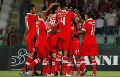 O onze inicial do Benfica para este jogo foi no mínimo surpreendente. O jogador que terá demonstrado estar em melhor forma nos jogos da pré-época (Carlos Martins) foi relegado para o banco. O Enzo Pérez, que também tinha mostrado bons pormenores nos jogos de preparação, juntou-se-lhe. O reforço Ola John nem convocado foi. Para a equipa inicial saltaram o Salvio, que ainda não tinha disputado qualquer jogo desde que regressou ao Benfica, e o Rodrigo, que apresentava as mesmas credenciais visto ter estado ausente nos Jogos Olímpicos. É caso para perguntar se os jogos de preparação terão alguma utilidade. Para a minha irritação inicial contribuiu também o facto de, mais uma vez, num jogo complicado, o Jorge Jesus reverter para a táctica dos dois avançados, entregando de mão beijada ao adversário a superioridade numérica no meio campo. Claro que o Braga, que se apresentou na Luz a jogar claramente em contenção e para o empate, não parecendo sequer contemplar qualquer tipo de estratégia para procurar activamente marcar um golo, não se fez rogado e explorou com facilidade essa fraqueza. A primeira parte foi portanto bastante fraca, com o Braga a procurar guardar a bola e o Benfica anormalmente apático a assumir uma atitude expectante. As poucas jogadas de algum perigo resultaram quase todas de raras jogadas de contra-ataque em que conseguimos recuperar a bola e levá-la rapidamente para a frente. Mas, que me recorde, não conseguimos obrigar o guarda-redes adversário a nenhuma intervenção de elevada dificuldade. Do nosso lado, o pouco espaço no meio campo resultou em diversos passes aparentemente fáceis errados, com alguns jogadores a mostrarem uma estranha falta de concentração - casos do Artur, Maxi ou Luisão.