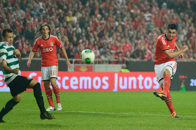 Oscar Cardozo, indubitavelmente, o homem do jogo. Marcou um hat trick dos verdadeiros. O terceiro golo foi muito bom, pois o remate de primeira foi indefensável, mas gostei particularmente do segundo, pois toda a jogada foi bonita e o Cardozo apareceu no sítio certo a cabecear de forma exemplar e certeira - ainda para mais quando o jogo de cabeça até nem é um dos seus pontos mais fortes. Gostei muito, para não variar, do Enzo, que trabalhou imenso e saiu esgotado, e do Gaitán, que foi o nosso jogador mais criativo (ele por norma costuma jogar quase sempre muito bem contra o adversário desta noite). O Garay não esteve ao seu nível no seu centésimo jogo com a nossa camisola. Os dois golos sofridos de bola parada são prova disso.
