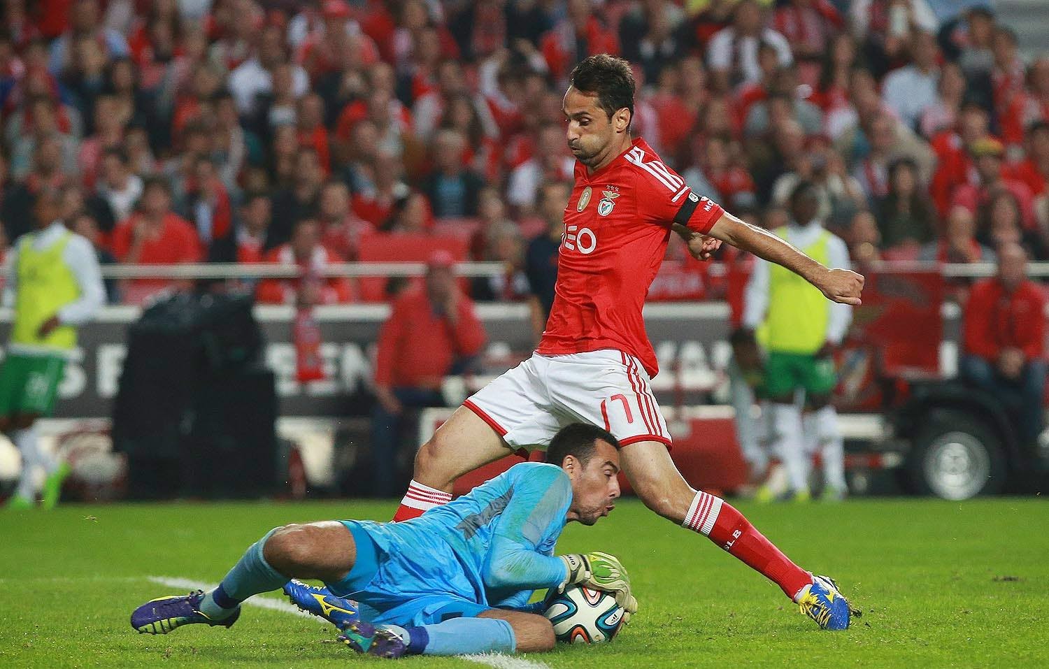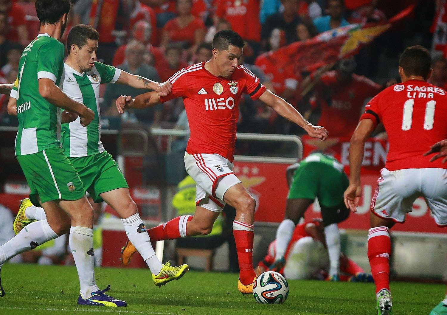 Não gostei da primeira parte. Um raciocínio que me pareceu pouco linear da parte do nosso treinador - 'tenho um jogador num óptimo momento de forma, é o melhor marcador do campeonato, vou afastá-lo da posição em que tem rendido mais e amarrá-lo ao flanco' ou 'tenho um lateral esquerdo no banco, mas vou adaptar o melhor trinco de que disponho neste momento a essa posição' - fez com que o nosso lado esquerdo fosse simplesmente inexistente durante todo esse tempo. A ausência do Gaitán já seria complicada, mas as opções tomadas não me convenceram nada. Do outro lado as coisas não foram muito melhores, já que o Salvio em particular cada vez mais insiste em jogar sozinho e perder bolas atrás de bolas em iniciativas individuais condenadas ao insucesso. No centro o Samaris continua a mostrar estar ainda demasiado perdido relativamente às funções que deve desempenhar em campo. Hoje por diversas vezes o Enzo surgiu numa posição mais recuada para pegar na bola e tentar organizar o jogo desde trás, mas mesmo jogando um pouco mais adiantado o grego pareceu-me claramente o jogador em menor rendimento durante os primeiros quarenta e cinco minutos, e a aposta óbvia para a substituição ao intervalo. Salvaram-se então, para mim, as iniciativas do Enzo e as movimentações do Jonas, a recuar para encontras espaços à frente da área adversária, mas na maior parte dos casos o Benfica foi demasiado confuso e lento a atacar, não sabendo tirar partido disso. Em termos de oportunidades, o Benfica da primeira parte ficou-se por dois remates perigosos do Lima, que obrigaram o Cássio a defesas apertadas, e um cabeceamento do Lisandro num canto que, dada a forma como ele apareceu solto no meio da área, merecia melhor direcção do que ir direito ao guarda-redes.