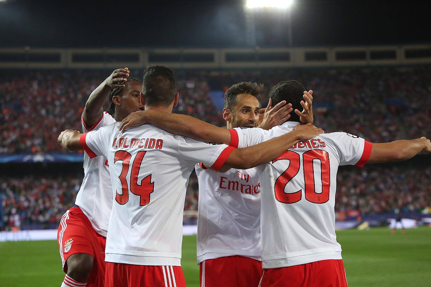 Já disse que para mim o mérito maior desta vitória está na equipa como um todo, e quanto a exibições individuais acho que podia elogiar todos os jogadores um a um. Menciono alguns, mas podia perfeitamente escolher outros. O Gaitán é uma das minhas escolhas. É o maior talento, aquele em quem depositamos sempre as maiores esperanças para que resolva, e foi isso mesmo que fez. Um golo, uma assistência, e os adeptos do Atlético talvez tenham começado a perceber hoje que o preço que sempre pedimos por ele não era nada exagerado. O Nélson Semedo continua simplesmente fantástico. Para quem via os jogos da nossa equipa B o ano passado, o mais impressionante é ver que ele joga na Champions exactamente como o fazia nesses jogos. Para ele parece não haver diferença. Aliás, se há diferença é para melhor, porque cada vez está mais seguro a defender. O Jardel esteve imperial na defesa. O Gonçalo Guedes, sem grandes alaridos e muita humildade, vai-se impondo como titular - o que ele trabalha para a equipa nas tarefas defensivas é digno de ver. André Almeida mais uma vez a justificar a validade da aposta em si, já que veio dar muita solidez defensiva. Uma menção também para um dos jogadores que é mais frequentemente criticado, até pelos próprios benfiquistas: gostei muito do jogo do Eliseu.