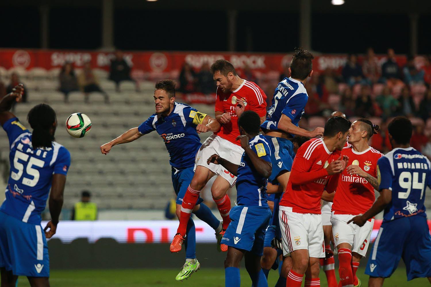 Algumas alterações para este jogo, a começar nas laterais. O Sílvio passou da direita para a esquerda, e do outro lado a surpresa com a estreia absoluta do moçambicano da equipa B Clésio. O Eliseu passou directamente para a bancada. No meio campo, uma opção bastante mais ofensiva com o Talisca a fazer o André Almeida sair do onze após a desastrosa exibição do último jogo. Nem sequer deu tempo para começarmos a ter qualquer tipo de preocupação neste jogo, pois logo aos três minutos, e na primeira vez que chegámos à baliza adversária, marcámos. Mais uma assistência do Gaitán, que fez o cruzamento quase sobre a linha final, e mais um golo do Jonas, que cabeceou a bola sobre o guarda-redes adversário, aproveitando um certo mau posicionamento deste. Apenas mais alguns minutos decorridos e já o marcador funcionava novamente, desta vez num autogolo do Berger, que atabalhoadamente e sem estar sequer pressionado enviou uma rosca para dentro da própria baliza depois de um cruzamento do Jonas. Com dois golos de vantagem ao fim de doze minutos de jogo, as coisas ficavam praticamente resolvidas e portanto o Benfica pôde jogar de forma pausada quase descontraída, gerindo o esforço para o jogo da Champions. Pareceu-me que nos limitámos a controlar a bola e o ritmo sem forçar praticamente nada, pelo que o jogo nem foi particularmente interessante de seguir. O melhor momento acabou por surgir na jogada do terceiro golo, obtido perto do intervalo. Bom passe do Jonas para a desmarcação do Gonçalo Guedes, que evitou o guarda-redes e depois marcou de ângulo já algo apertado. Eficácia mais do que absoluta do Benfica, que chegou ao intervalo com três golos marcados em dois remates feitos. Melhor era difícil.