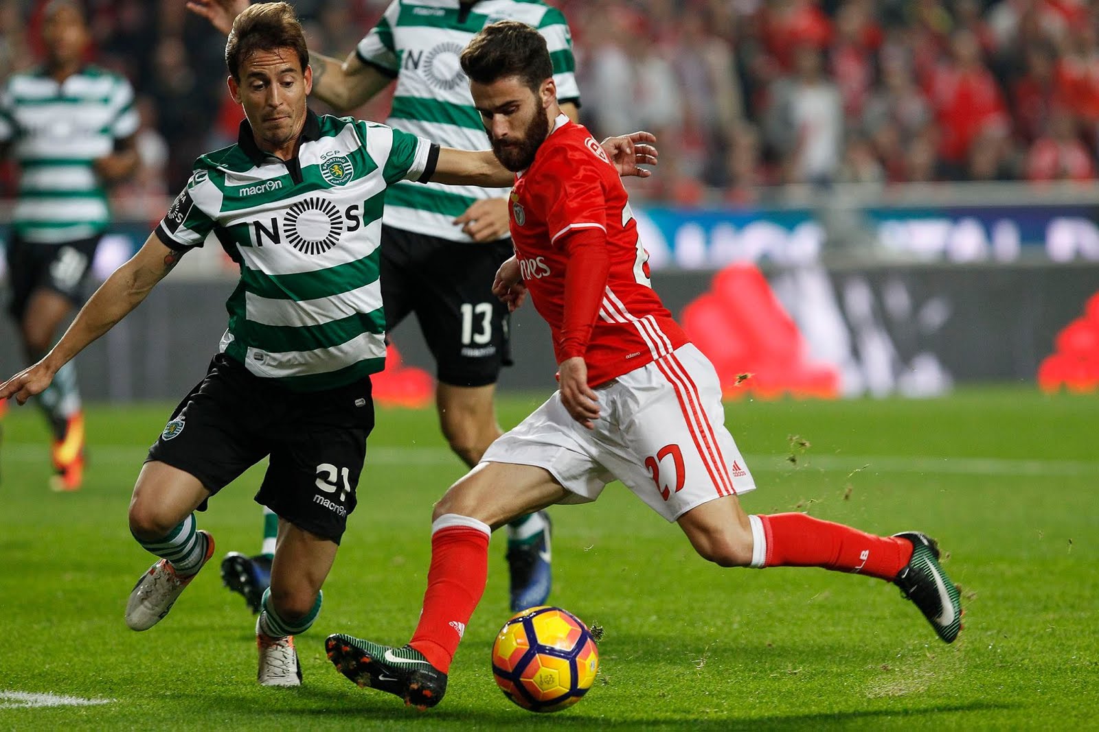 Não esperava que o nosso treinador fizesse qualquer alteração no onze que alinhou nos últimos jogos, mas acabou por haver uma mudança: na esquerda foi o Rafa quem apareceu a titular, relegando o Cervi para o banco. Do outro lado, o Sporting apresentou o onze esperado. Sobre a primeira parte, acho que há pouco a dizer. Em termos tácticos as equipas encaixaram quase perfeitamente uma na outra e mostraram demasiado respeito (ou receio) mútuo, pelo que o jogo, apesar de sempre muito disputado, sobretudo na zona do meio campo, teve raras ocasiões de muito perigo. Desde cedo que foi evidente que a estratégia do Sporting passava muito por anular sistematicamente logo à partida com faltas as tentativas de saída rápida do Benfica para o ataque (acho que só mesmo um critério de arbitragem muito largo é que me permite compreender que o William tenha conseguido acabar o jogo sem um amarelo sequer, e que o Marvin tenha estado perto de conseguir o mesmo feito) mas acabou por ser mesmo numa transição rápida para o ataque que conseguimos inaugurar o marcador. Boa condução da bola do Gonçalo Guedes pelo centro do terreno, aproveitando a oferta do William e soltando-a na altura certa para a corrida do Rafa na esquerda, saindo depois um passe de trivela para o lado oposto, onde o Salvio conseguiu já com alguma dificuldade finalizar de primeira. Num jogo com este figurino era de capital importância marcar primeiro, e esse passo estava dado. O jogo não mudou muito com o golo, no entanto, e continuou com o equilíbrio a ser a nota dominante. Um ou outro lance de parte a parte a levar a bola mais perto das balizas, sobretudo a partir de bolas paradas, mas nada de muito emocionante. Só mesmo a fechar a primeira parte é que houve uma clara ocasião de golo, para nós, e surgida perfeitamente por acaso: o Bryan Ruiz teve uma péssima intervenção ao cortar um mau passe do Pizzi e colocou a bola nos pés do Jiménez, deixando-o sozinho em frente ao Rui Patrício. Mas o guarda-redes do Sporting respondeu com uma grande defesa e evitou aquilo que seria um duro golpe para a sua equipa mesmo antes do descanso.
