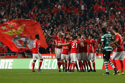 Havia mais de vinte minutos para jogar, o jogo estava agora relançado e antevia-se uma pressão ainda maior do Sporting na procura do golo do empate, até porque alguns dos nossos jogadores pareciam estar nos limites físicos. Mas de forma algo surpreendente não foi isso que aconteceu. O Benfica entretanto trocou os alas, a equipa ganhou alguma consistência, conseguindo acalmar o ritmo do jogo, e sobretudo voltou a conseguir sair com bola para o ataque, coisa que durante o nosso pior período não tinha acontecido. Foi também importante para estabilizar a equipa o fantástico ambiente que o Estádio da Luz quase lotado conseguiu criar no apoio à nossa equipa. Mesmo nos períodos mais complicados o público nunca deixou de estar com a equipa e isso ajudou-nos, e muito. O sufoco que se poderia antecipar por parte do Sporting acabou por nunca acontecer, e honestamente não me recordo do nosso adversário ter conseguido criar mais nenhuma ocasião de perigo até ao final do jogo, isto apesar de ter continuado a ter mais bola. As situações mais perigosas junto da baliza até foram nossas, ambas pelo Rafa. Numa, depois de servido pelo Cervi, tentou o remate de primeira quando estava completamente à vontade e enviou a bola para a bancada. Na outra, libertou-se do Rúben Semedo, ultrapassou ainda o Rui Patrício junto à linha final, mas acabou por fazer mal o passe atrasado para o Cervi, que estava em posição privilegiada. O JJ ainda deu uma pequena ajuda quando, nos minutos finais, surpreendeu ao retirar o Bas Dost do campo para colocar o André - acho que a única explicação que encontro para essa substituição é alguma 'fezada' dele no brasileiro. Resumindo, acabou por nem ser particularmente complicado para o Benfica segurar a vitória durante o tempo que decorreu entre o golo do Sporting e o final do jogo.