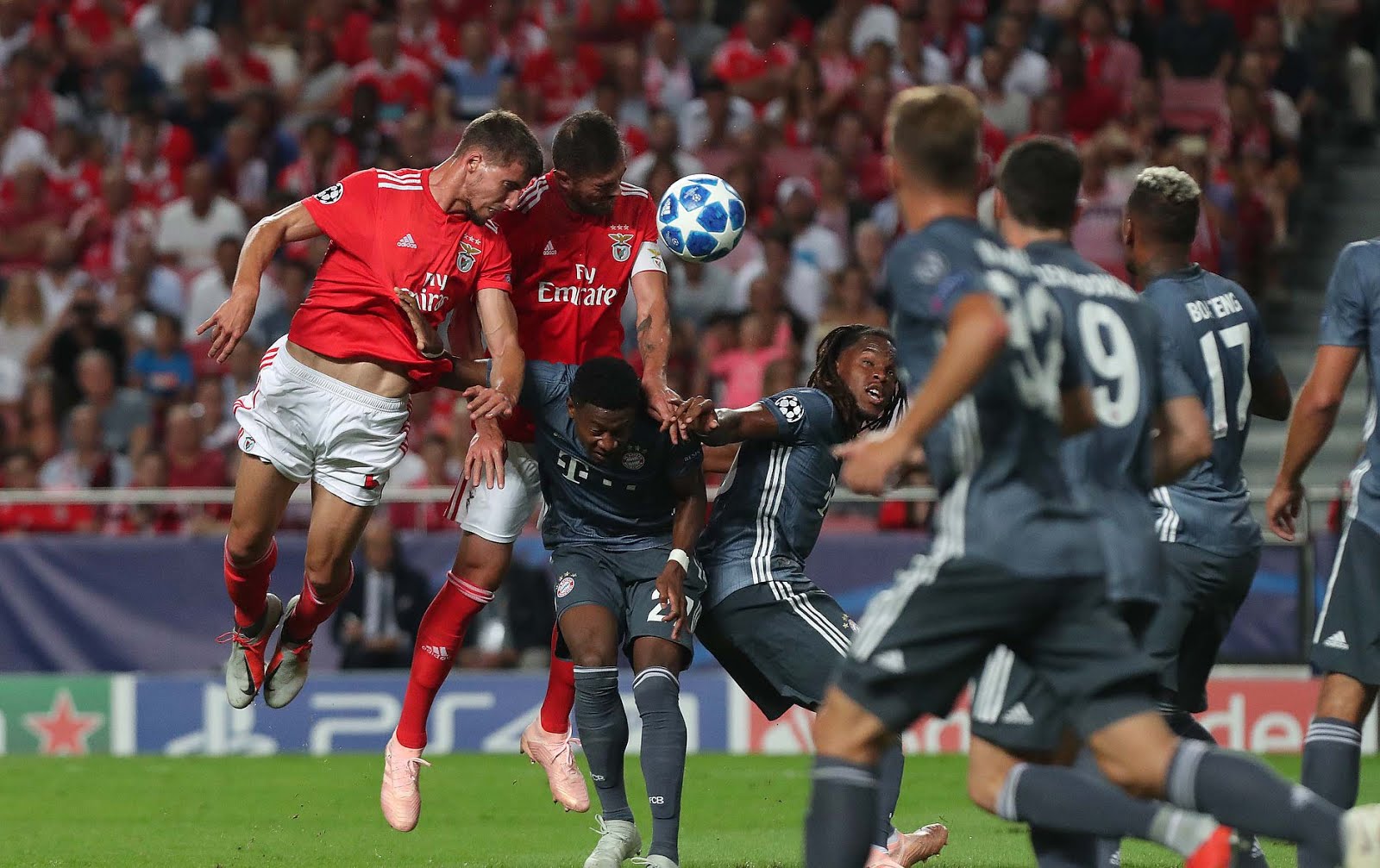 Não esperava grande evolução na segunda parte, e ela foi tão parecida à primeira que o Bayern até marcou mais ou menos na mesma altura, e numa jogada quase igual à do primeiro golo. Realce para o facto do golo ter começado numa situação em que o Benfica até tinha subido para pressionar os jogadores do Bayern junto à sua área. O Kimmich parecia estar mesmo em apuros, mas ao fim de poucos segundo a bola estava dentro da nossa baliza. Bastou um toque do Robben a libertar o Renato Sanches, que mais uma vez se apanhou solto e com dezenas de metros para correr com a bola. Levou-a desde o meio campo defensivo alemão até perto da nossa área, soltou-a para a direita da nossa defesa no Lewandowski, e este esperou pela entrada de um colega, mais uma vez desacompanhado, e que mais uma vez fez o centro desde a linha de fundo para a zona frontal da baliza, onde o Renato apareceu completamente à vontade para fazer o golo. Não o festejou, como era previsível, e foi bastante aplaudido pelo gesto, como era igualmente previsível. O golo foi uma espécie de ponto final no jogo. Não é que alguma vez me parecesse que o Benfica mostrasse capacidade para discutir o resultado, mas com dois golos de desvantagem nem sequer poderíamos ter esperança que algum lance fortuito nos permitisse o empate. Ainda respondemos com a melhor situação de golo em todo o jogo, um cabeceamento do Rúben Dias num canto que obrigou o Neuer a uma grande defesa, mas pouco depois pareceu que o próprio Benfica percebeu que dificilmente chegaria lá. Pelo menos as substituições do Salvio e do Pizzi passaram para o público a ideia de que estaríamos já a poupar dois jogadores importantes para o próximo jogo. Não é que algum deles estivesse a ter uma noite particularmente brilhante (a exibição do Salvio então foi atroz) mas são sempre dois jogadores de quem se espera um lance decisivo. Mas mesmo sem eles em campo, na fase final do jogo o Bayern relaxou um pouco e deu mais espaço na defesa. Não o aproveitámos muito (sempre alguma cerimónia na altura de rematar, e depois quando o fazíamos já não era na situação ideal) mas surgimos mais frequentemente perto da baliza adversária e até deu para equilibrar um bocadinho a estatística dos remates, que chegou a estar muito desnivelada. Perto do final, ainda deu para o Odysseas negar o golo ao Robben pela terceira vez.