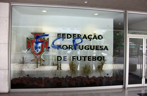 Assim estava ontem a sede da Federação Portuguesa de Futebol (ou, em abono da verdade, mais uma casa dos corruptos em Lisboa):
